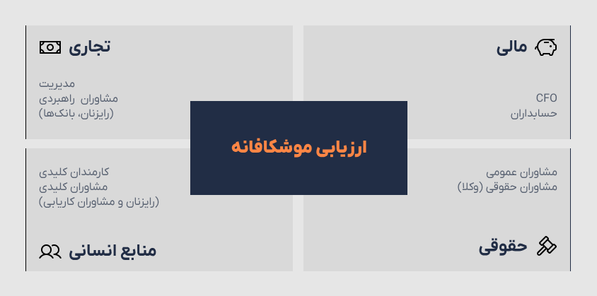 ارزیابی موشکافانه بر مبنای روشهای استاندارد شامل ارزیابی فنی، مالی، اقتصادی و حقوقی است. مرحله مطالعات دقيق بسته به ماهيت پيشنهاد کسبوکار متفاوت است. این فرآیند شامل حل مسائل مربوط به ارجاع مشتری، ارزیابی استراتژیهای محصول و کسبوکار، مصاحبههای مدیریتی و دیگر تبادل اطلاعات در طول این دوره است و براساس آن تصمیمگیری خواهد شد.